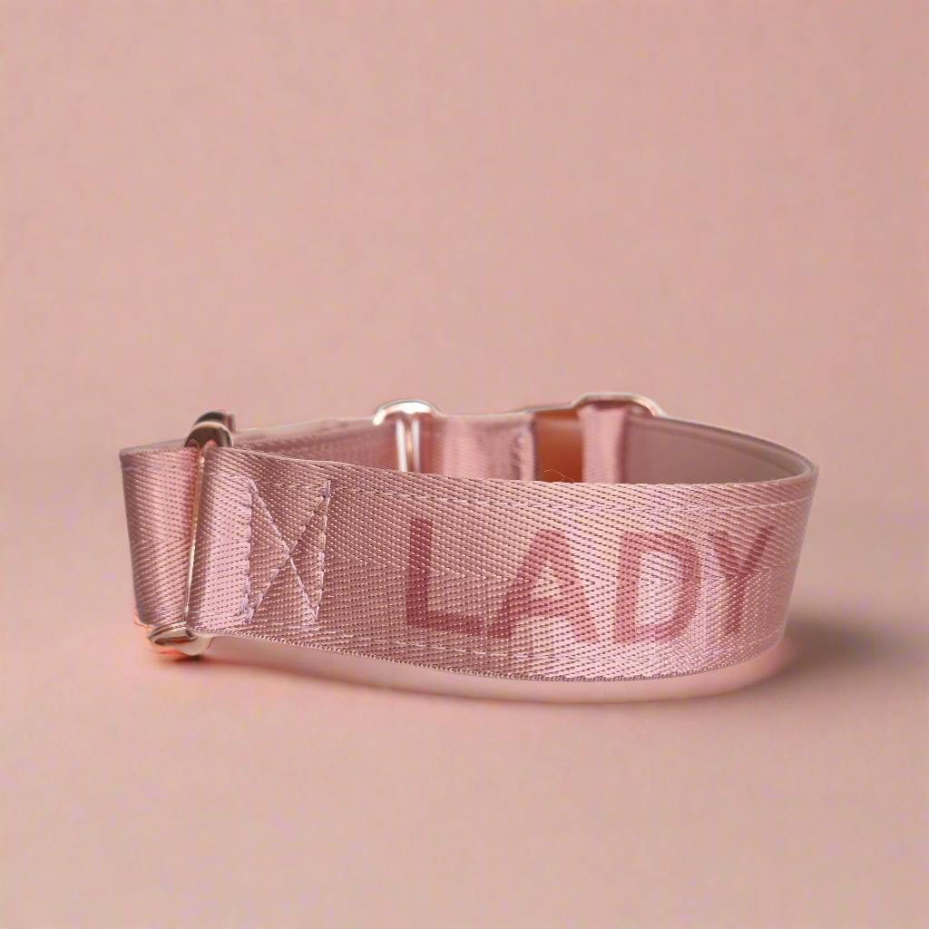 Dusty Rose Martingale Dog Collar – Padded, personalised with Dog’s Name Optional
